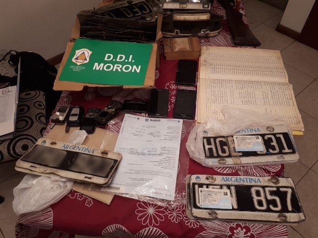 La Policía de Morón secuestró tres escopetas, tres pistolas, dos inhibidores satelitales, 25 patentes de vehículos robados, 14 teléfonos celulares y 150 autopartes de camiones y colectivos.