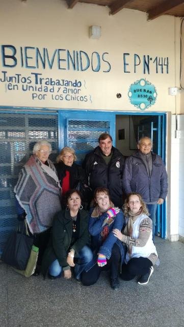 El jueves los “Cuentabuelos” José Luis Guilledo, Cristina Torrielli, Carlos Rodríguez, Carmen Travascio, Carmen González y Julia Mansilla, brindaron relatos infantiles a los alumnos de la escuela 144 ubicada en el barrio San Pedro del km 36.