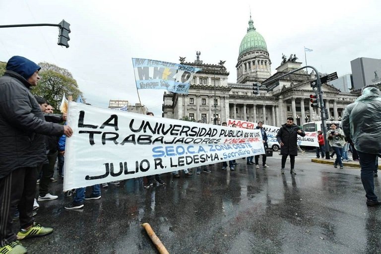 “Este sindicato una vez más, se hace presente en conjunto con los trabajadores para luchar por la igualdad social y decirle basta al recorte presupuestario a las universidades, basta de ajuste, de pobreza”, declaró Fabricio Ledesma, secretario de Deporte y Turismo de SEOCA.