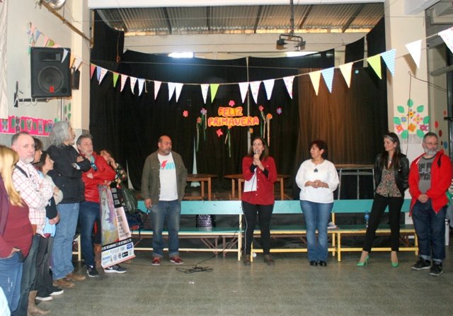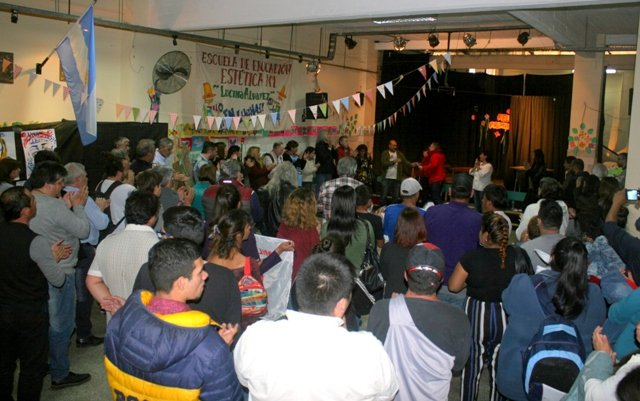 El patio interior de la escuela se llenó con alumnos, padres, docentes de la escuela y numerosos sectores de la comunidad: docentes, sindicales, de derechos humanos y políticos.