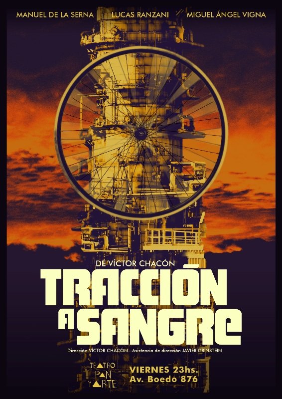 VC: “Como dije antes la obra plantea éste desgaste físico en escena, situación que llamó mucho la atención de los actores cuando les presenté el proyecto. Con el primero que hablé fue con Manuel de la Serna, que me preguntó en una cena post función de si tenía escrito algún texto dramático; le conté el argumento de Tracción a Sangre y me incentivó que la hagamos. Lo mismo me pasó con el resto del equipo, Miguel Ángel Vigna que empezó como asistente me decía todo el tiempo que él en realidad quería actuarla y cuando se dio la oportunidad para que entre a escena la rompió. Tanto ellos como Lucas Ranzani, que completa el elenco, le ponen el cuerpo a la obra. Se tomaron en serio el nombre de la obra y dejan todo”.