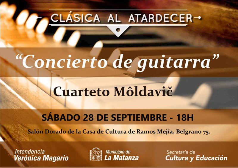 Organizado por la Secretaría de Cultura y Educación de La Matanza, el ciclo Clásica al Atardecer presenta al Cuarteto Môldavič, una formación integrada por cuatro talentosos guitarristas, Agustín Farías, Gabriela Reides, Lucas Saitta y Hernán Piro.