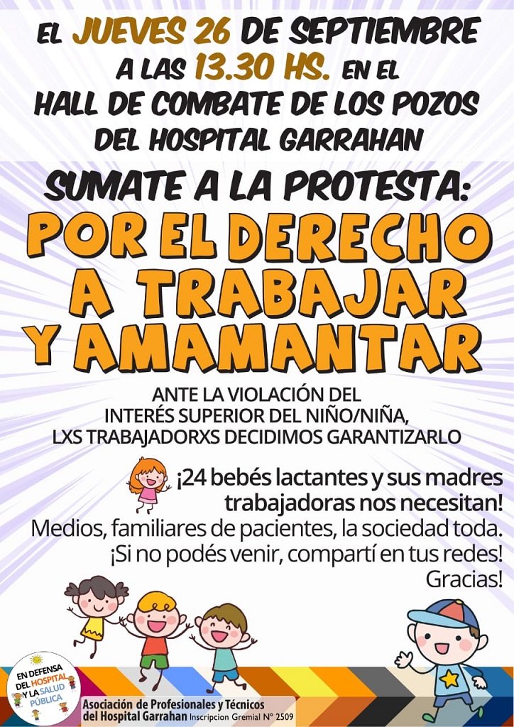 “Las y los trabajadores del Garrahan ya hicimos más de diez sentadas frente a la dirección del hospital, un festival musical ‘por el derecho a amamantar y trabajar’, enviamos una carta documento a Horacio Rodríguez Larreta y presentamos un amparo en la Justicia de la Ciudad Autónoma de Buenos Aires, que recayó en el juez Francisco Ferrer del Juzgado Contencioso Administrativo 23, y seguiremos luchando hasta que amplién el maternal hasta que haya vacantes para todas nuestras compañeras”, finalizó.