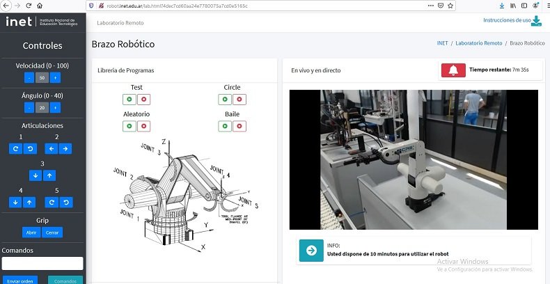 El robot está físicamente ubicado dentro de uno de los laboratorios del INET y se puede controlar a distancia, por internet, utilizando un programa previamente cargado y siguiendo una lista de comandos definidos para que realice la secuencia deseada.
