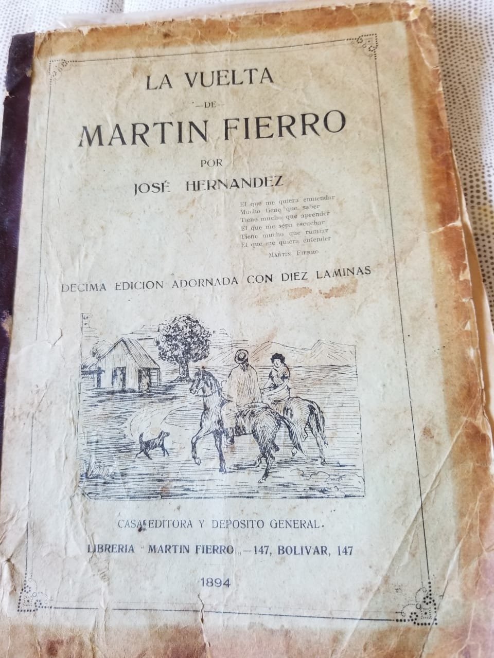 “Queridos amigos, les acabo de mandar las fotos que tengo en mi mesa de luz de los dos ejemplares originales de 1894 del Martín Fierro y La vuelta de Martín Fierro que mi abuelo siempre tuvo en su mesa de luz junto a la Santa Biblia y que recibí en herencia”, contó a través de un escrito.