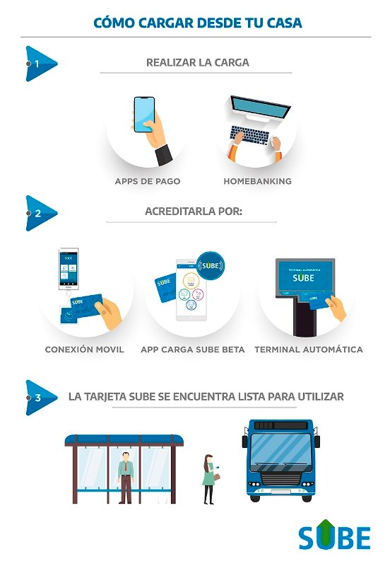 Luego de realizada la compra de la carga, el o la usuaria deberá acreditarla a la SUBE. Puede hacerlo desde el celular con la aplicación “Carga SUBE”con tal solo apoyar la tarjeta detrás, o desde las Terminales Automáticas ubicadas en espacios públicos. Para conocer su ubicación ingresar en la web de argentina.gob.ar/SUBE.