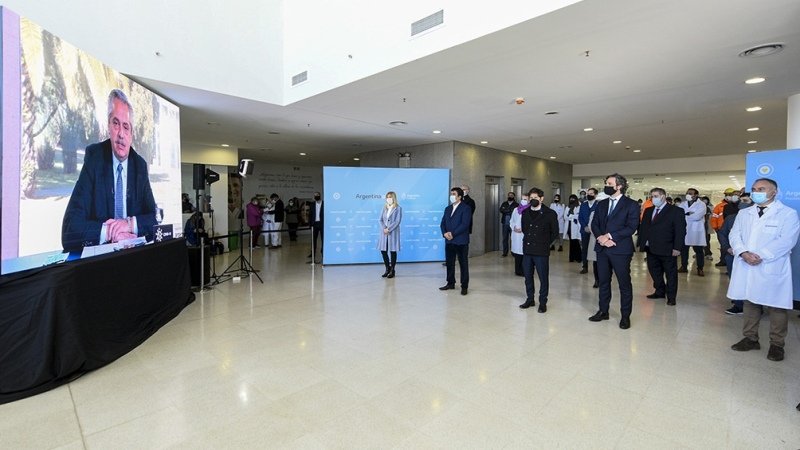 Mediante una videoconferencia, el presidente Alberto Fernández, junto con otros gobernadores y funcionarios, asistió virtualmente a la inauguración del hospital Doctor Rene Favaloro ubicado en Rafael Castillo.