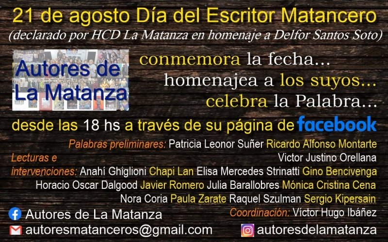 Autores de La Matanza (colectivo autogestivo, cooperativo e independiente) conmemorará la fecha homenajea a los suyos, celebra la Palabra con una trasmisión en vivo a través de su página de Facebook: Autores de La Matanza.