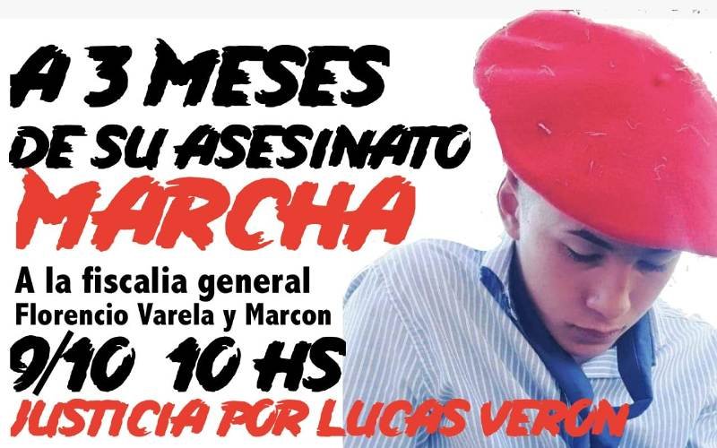 El 9 de octubre a las 11 de la mañana se concentraron en los Tribunales de La Matanza, Florencio Varela y Marcón, familiares y vecinos del joven Lucas Nahuel Verón para exigir justicia. El joven fue asesinado el 10 de julio, cuando cumplía 18 años por dos efectivos de la comisaría de González Catan, en la zona de Villa Scasso.