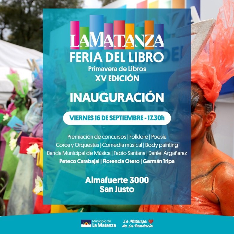 La XV edición de la Feria Municipal del Libro “Primavera de Libros”, organizada por la Secretaría de Cultura y Educación de La Matanza, tendrá su acto inaugural el próximo viernes 16 de septiembre, a las 17.30 horas.