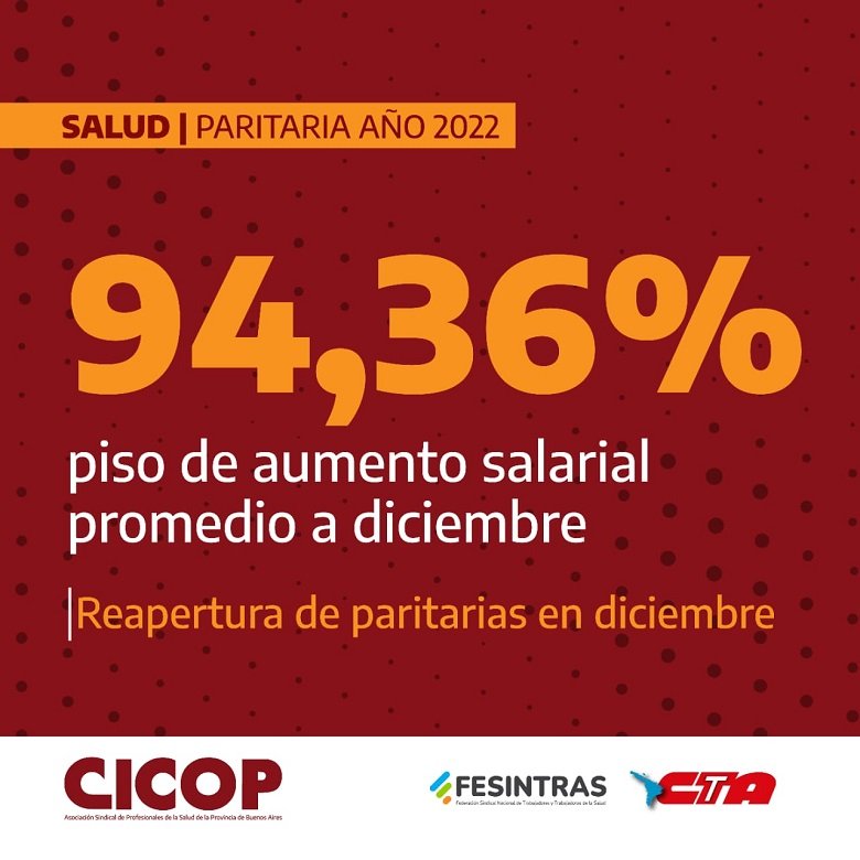 Además, los y las profesionales nucleadas en CICOP destacaron: “Que este 94% que obtuvimos no sea el número final del 2022. También es importante que funcionen las mesas paritarias sectoriales para discutir nuestras condiciones laborales.”