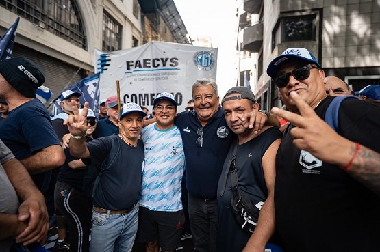Durante la movilización, el gremialista estuvo acompañado por integrantes de la Comisión Directiva del gremio, delegados de base, militantes y afiliados a la organización sindical.