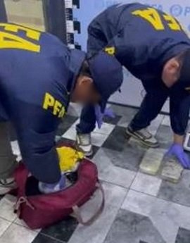 Seguidamente y en presencia de testigos, se practicó el test orientativo sobre los elementos hallados, el cual arrojó resultado positivo para clorhidrato de cocaína distribuidos en tres ladrillos, 51 cápsulas conteniendo la misma droga y una bolsa con 360 gramos de hojas de coca. Asimismo, se hallaron un teléfono celular, 42.600 pesos argentinos, 330 pesos bolivianos y documentación de utilidad para la causa.Ante dicha circunstancia, se procedió a la demora preventiva de la mujer, el resguardo del equipaje y elementos. Posteriormente se efectuó la comunicación con el Juzgado Nacional en lo Criminal y Correccional Federal N°10, a cargo del Dr. Julián Daniel Ercolini, Secretaría N°19 a cargo de la Dra. Mariana Eguibar Pozzi, quien dispuso la detención de la involucrada y el secuestro de las drogas.